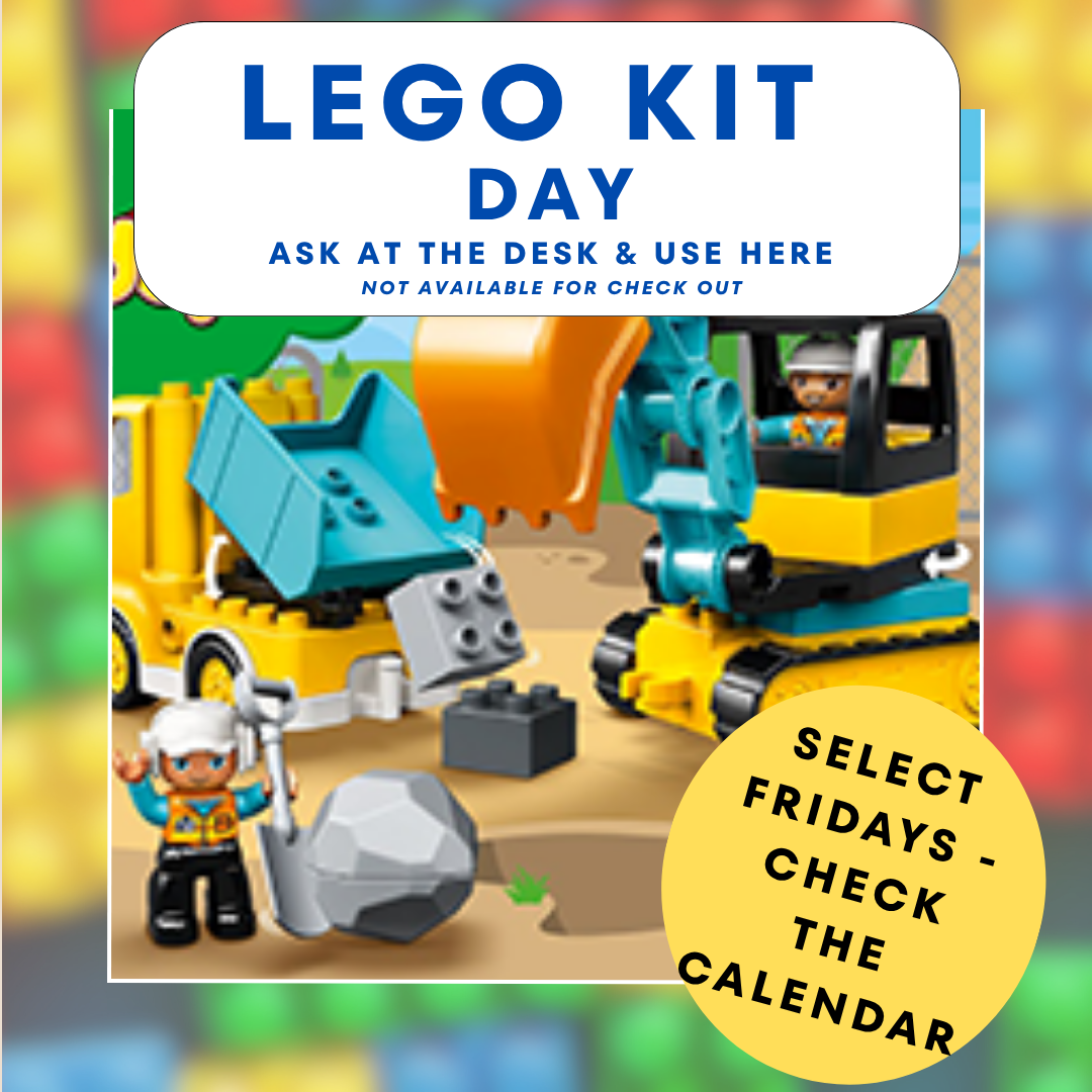Lego Kits are available from 9-3:30 some Fridays. They are only for in library use.