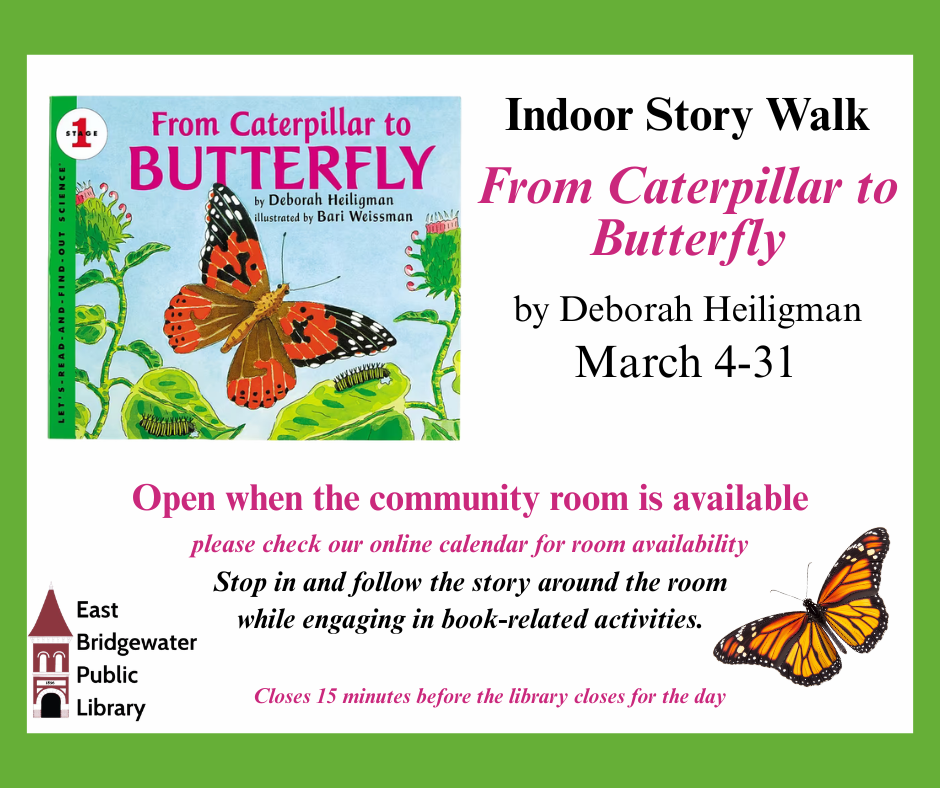 Join us for our last winter indoor story walk for March! Big book pictures are around the room to read the story. Find activities related to the book along the way. Perfect for children ages 0-5.